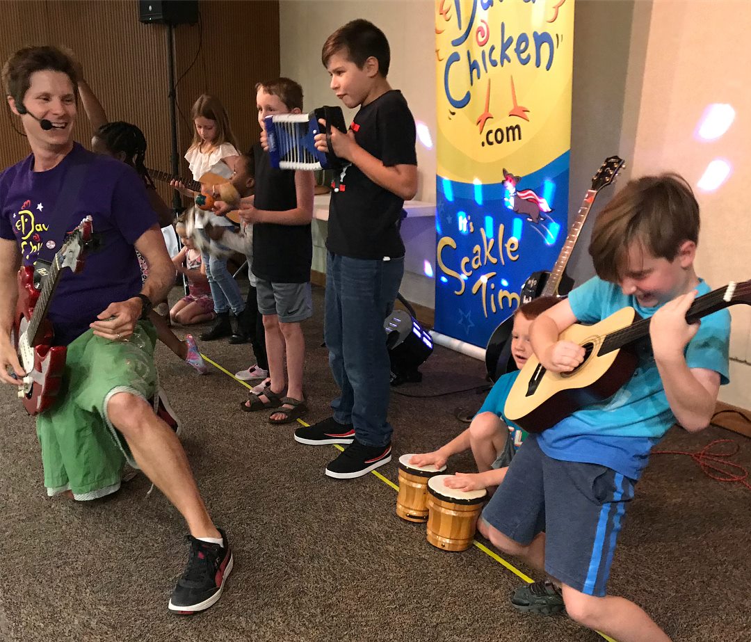 David McMahon, aka David Chicken, three-time Emmy Award-Winning musician, leads the audience through high-energy, interactive performances. Filled with creative movement, educational messages, and general hilarity, the shows are filled with music from David’s super-catchy original music CDs and DVDs. David invites members of the audience on stage to sing, play musical instruments and be a star! With the current live music challenges, the show can be delivered virtually or at a safe distance.