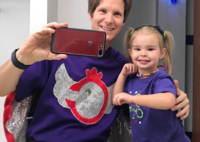 After graduating from the University of North Texas, David began performing across the country, first as the “Toyologist” – a character he developed for Toys “R” Us – and soon thereafter as David Chicken. He saw firsthand how music could bring smiles and laughter to kids and parents alike, through positive messages inspiring creativity, exercise and learning.
